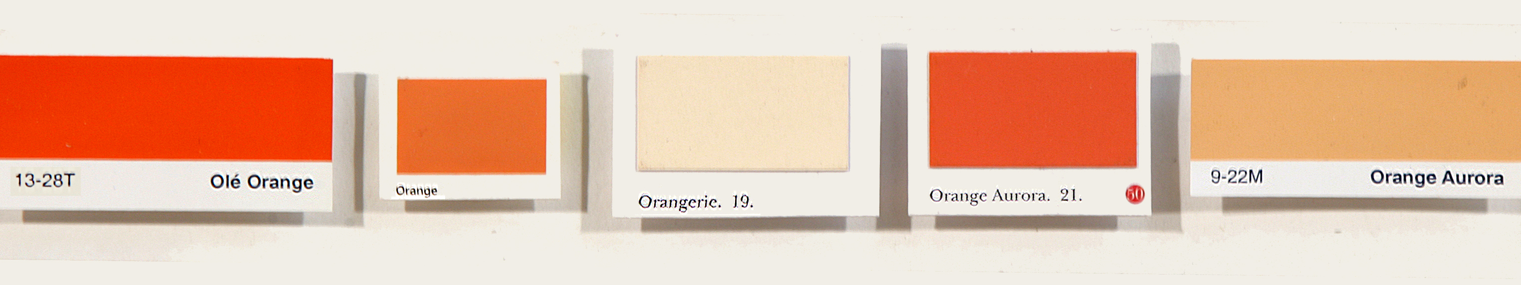 Paint colour samples named after fruit, appropirated into alphabetical order